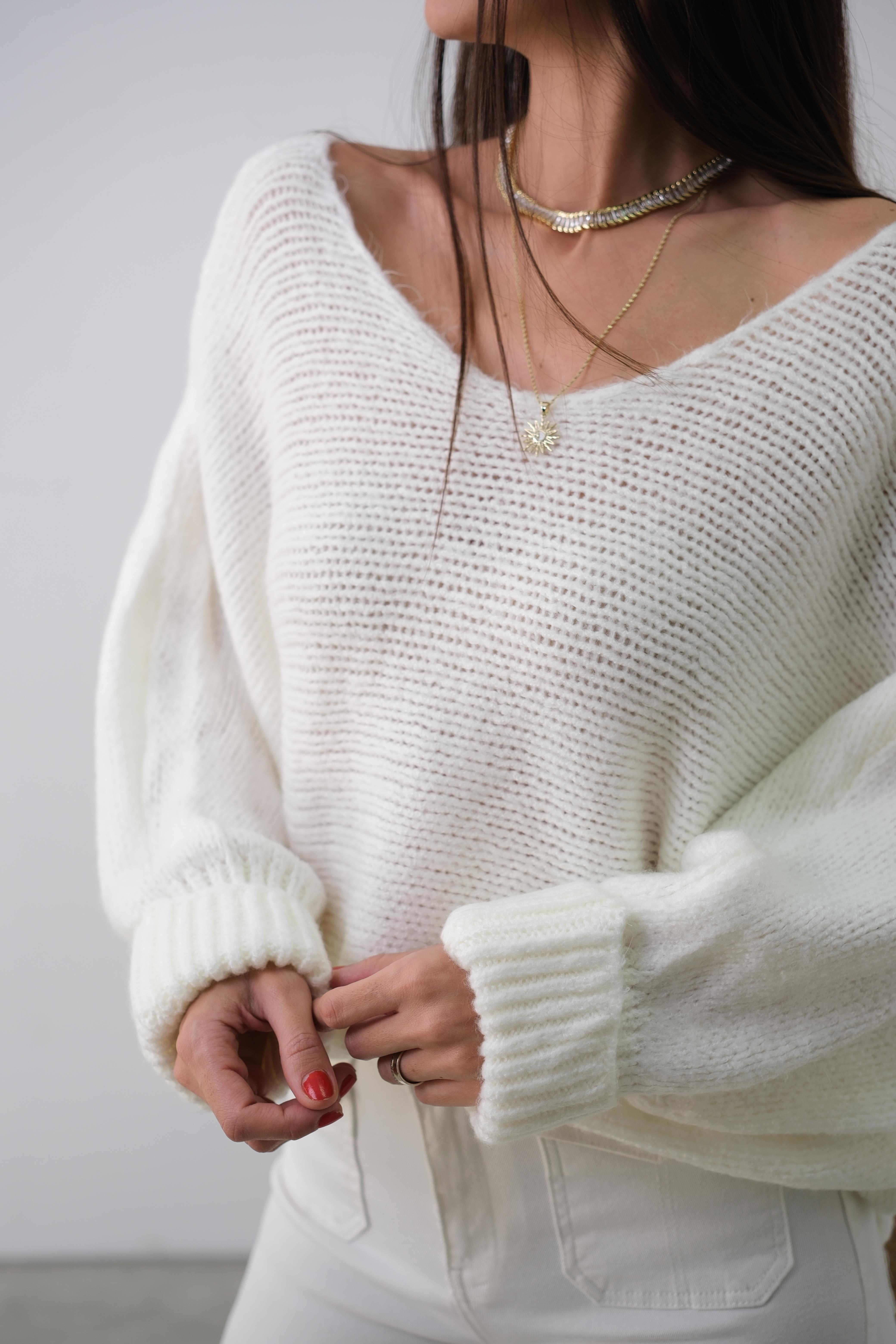 PUFFY V YAKA BEYAZ KAZAK