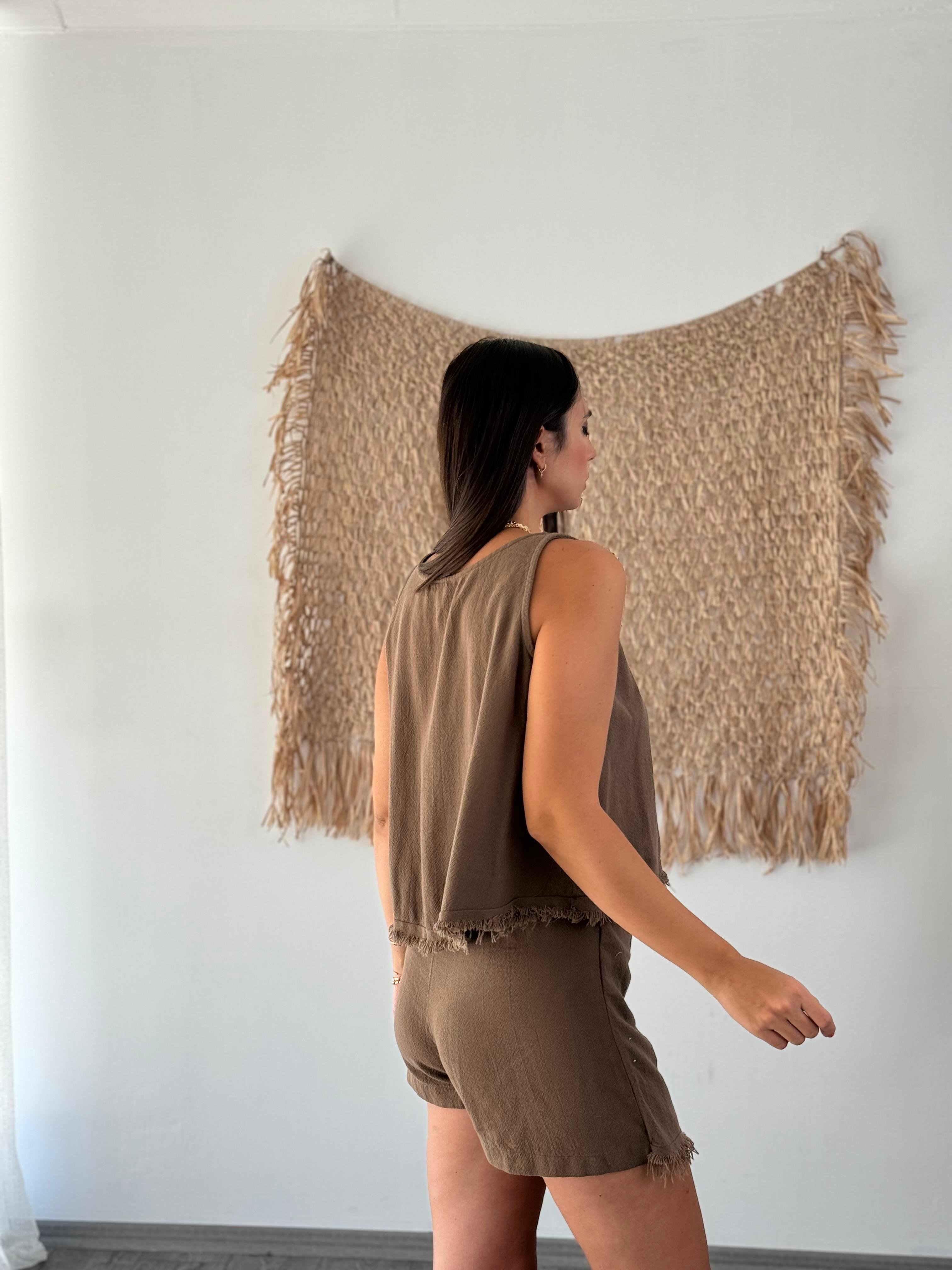 Modelin Ölçüleri: 1.84/70 kg. Mankenin üzerindeki M beden. Kalıp: Normal Boy/Ölçü: Uzun Tüm Boy Ölçüsü: 51 cm Göğüs Ölçüsü: 55 cm Kumaş: %100 Pamuk
