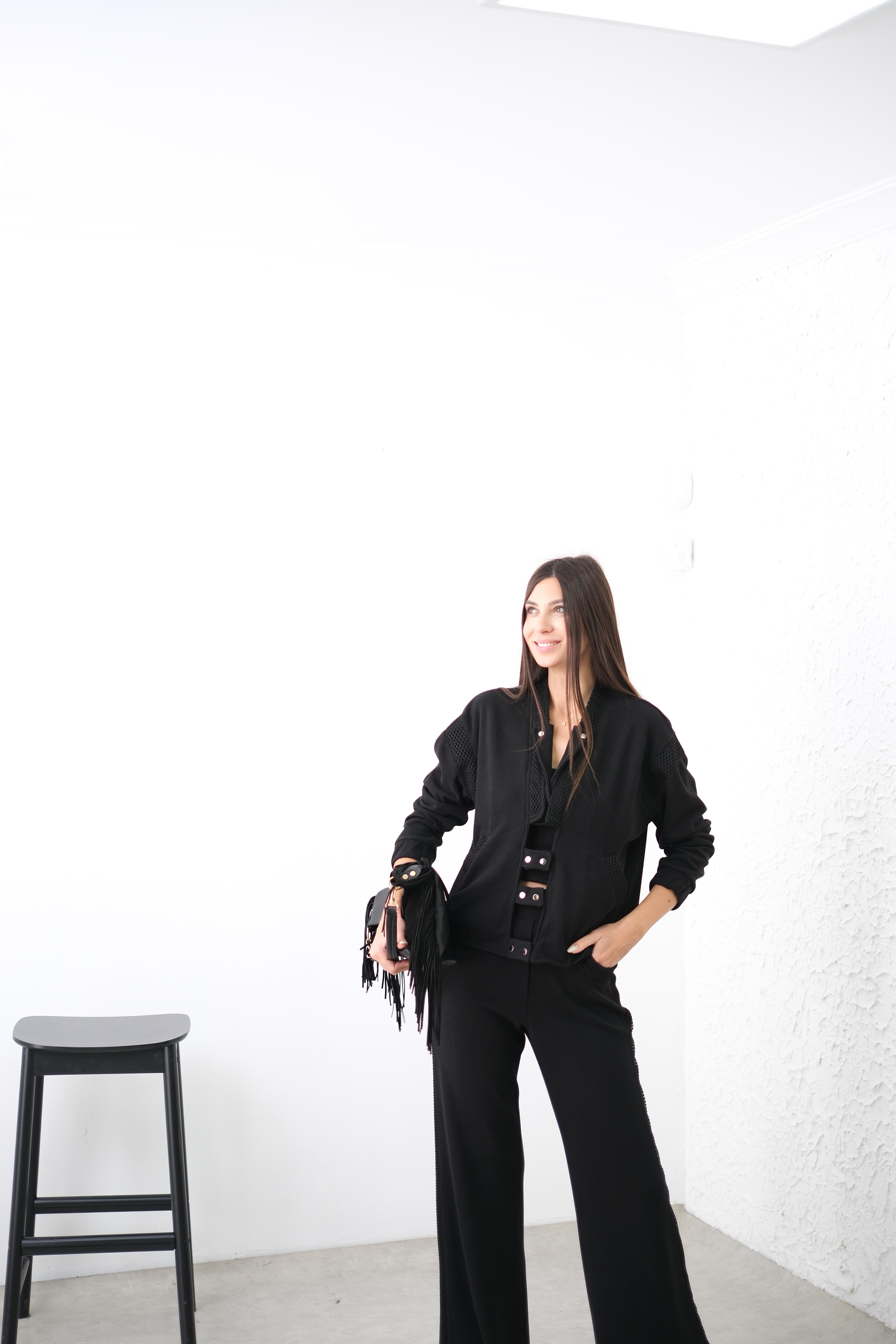 RİGA FİLELİ SİYAH TRİKO PANTOLON
